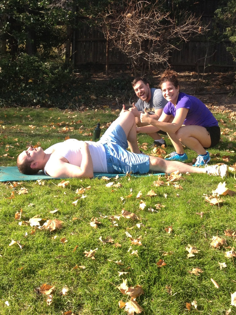 so peter is a patriots fan and i'm a giants fan. so, being a house divided, the super bowl last year was really special. but i digress. last night, peter and my cousin max (jets fan, who knows why) had a bet. if the jets won, pete had to eat 2 lunchables and wash them down with a capri sun (pete only agreed to this because he was confident the jets winning was a non starter) and if the patriots won, max had to do 100 burpees for time. so you can imagine how friday morning, the day after thanksgiving, was for our poor cousin. but pete and i rogered up to partake in the burpee torture with him.