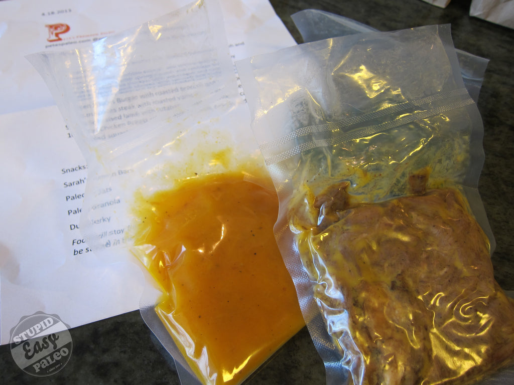 Review by Stupid Easy Paleo Imagine a Paleo chef cooking you plates of amazing food each week - a variety of high-quality, sustainably-raised meats, locally-sourced vegetables, scrumptious snacks, and the most amazing bacon you've ever tasted - and all you'd have to do is place your order online. Go ahead. I'll wait as you wipe the drool off your keyboard. If you're in California, this daydream can actually be a reality, and Pete's Paleo - owned by Pete and Sarah Servold - is the company making it happen. They ship all over the state or deliver to different local businesses here in the San Diego area. For those of you outside California, don't despair! Pete's is planning to expand into a national program soon. Score! Watch their website for more details, and get on their mailing list. Back to the food...and let me tell you, it's delicious. Ever since Pete's started offering delivery to Invictus Fitness, the CrossFit gym I train it, I'd been curious about ordering. I love to cook and create recipes of my own, but sometimes even I need a break! Having someone cook for me - especially awesome Paleo food - is rare, so I decided to treat myself with an order from Pete's. That's right...some girls pamper themselves with new clothes or a mani-pedi, but I do it with food! It couldn't be easier to order: after a few clicks on their site, my order was placed and all I had to do was wait. Pete's lets you customize your order by selecting the number of meals (5 or 10 plus snacks), or adding extra veggies or extra protein for an additional charge.