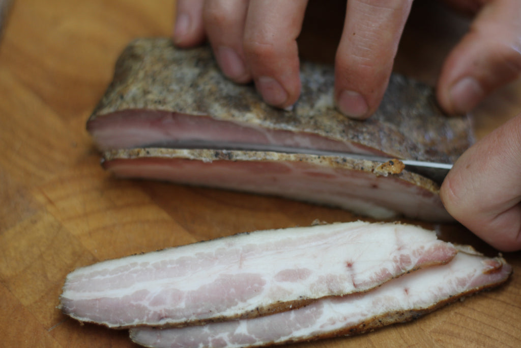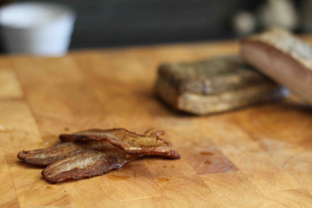 Thinly sliced Pete's Paleo Bacon.