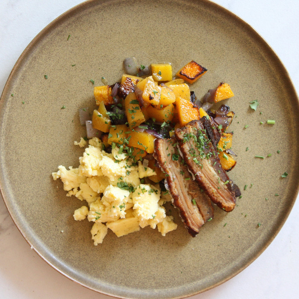 Defy the standard definitions of each meal. Perhaps try chicken and broccoli for breakfast or have eggs and bacon for dinner. Snack on crispy prosciutto and crunchy carrots (sweet and salty!) mid-morning. Skip the bread, and roll up some favorite vegetables, avocado, and avocado oil mayonnaise inside turkey slices any time of day.