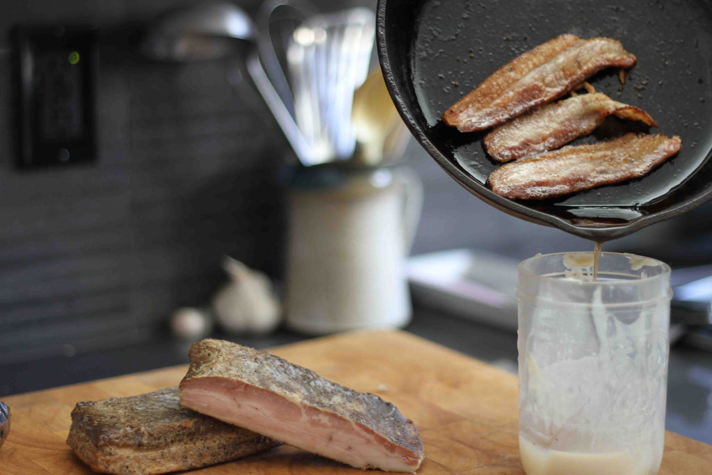 Don't forget to pour your bacon fat, once it's rendered out, into a glass jar to save and cook with in the future (use thick glass to avoid cracking under heat).
