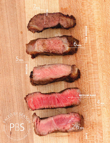 I have best results with a 'bone-in' steak that is at least 1” thick. Meat with bone in it always tastes better and, in my opinion, little is more stereotypically Paleo than gnawing on a big meaty bone!