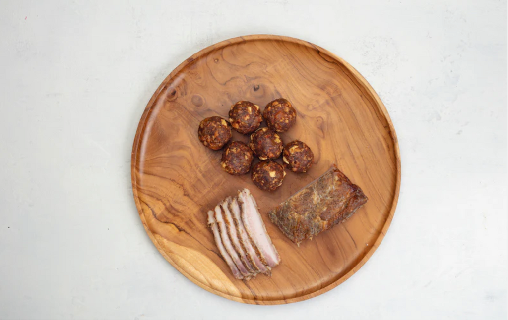 Bacon Balls: Combining our smoky and crispy bacon with dried fruit, almond butter and nuts make for a nutrient dense and flavorful snack. Great for those in between meal cravings and late-night snack needs
